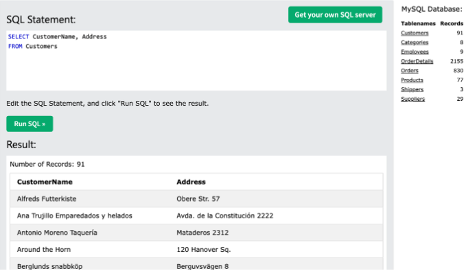 " Customers 테이블에서 CustomerName과 Address 를 가져와주세요. "